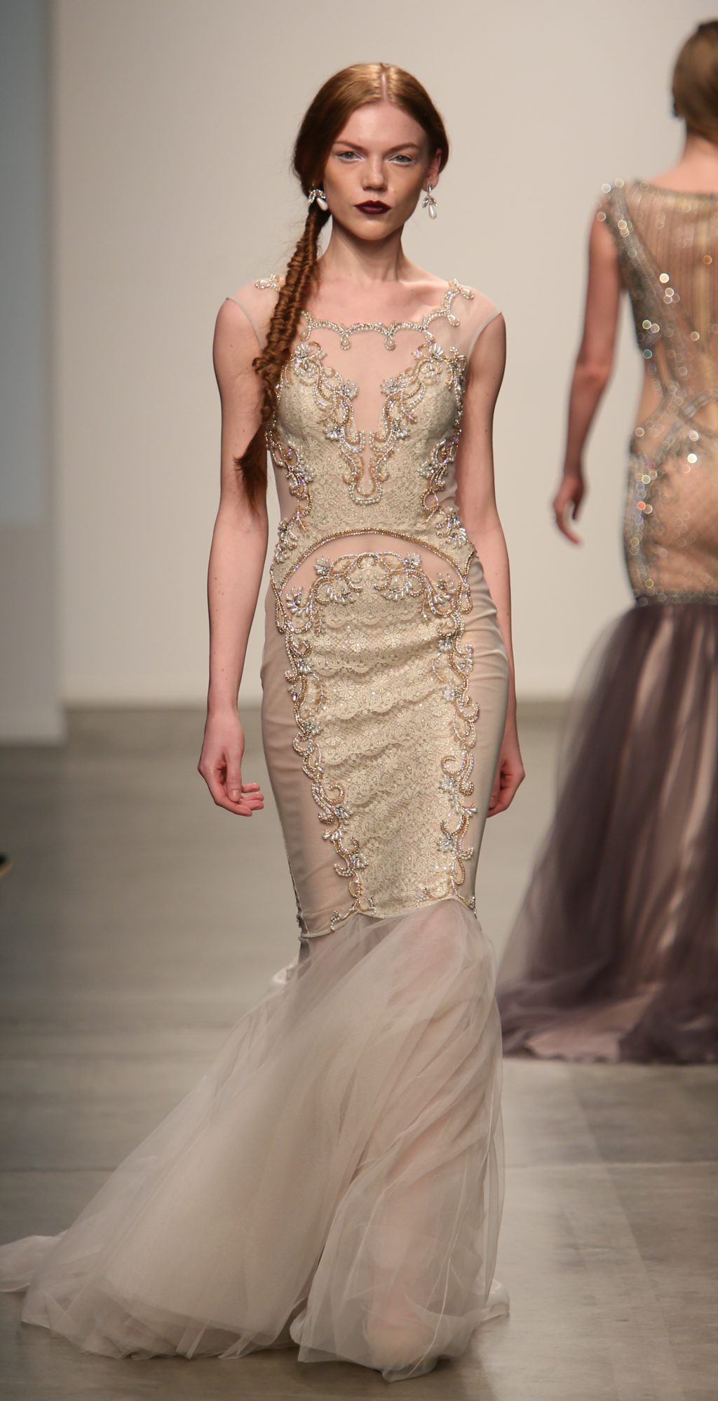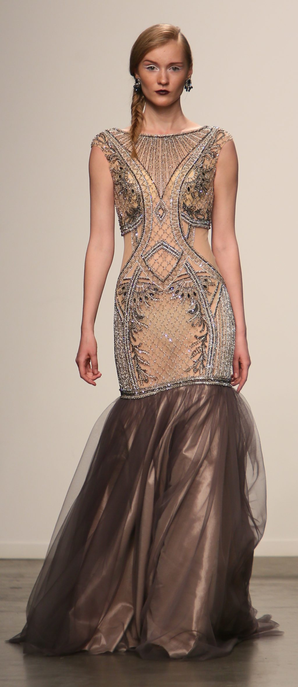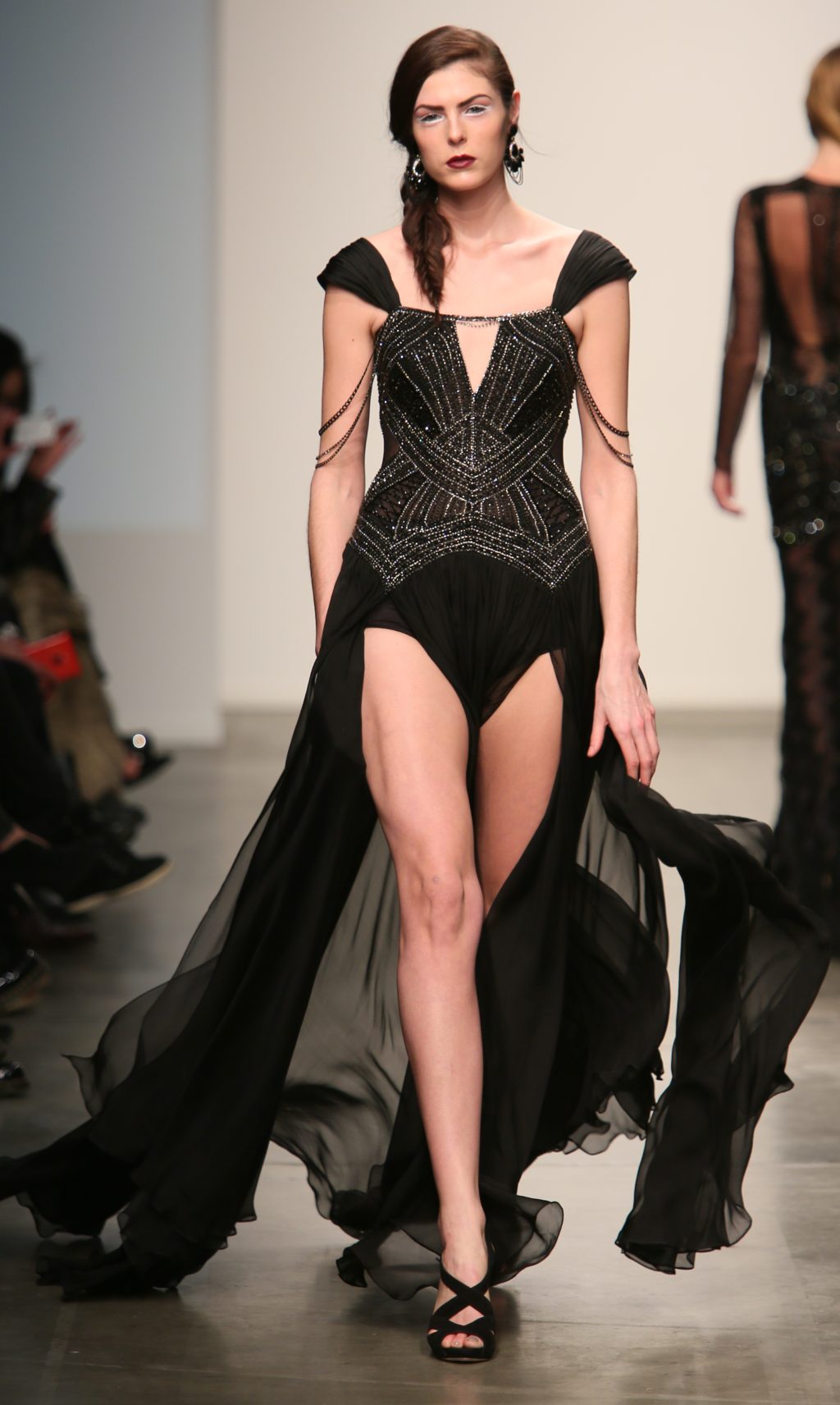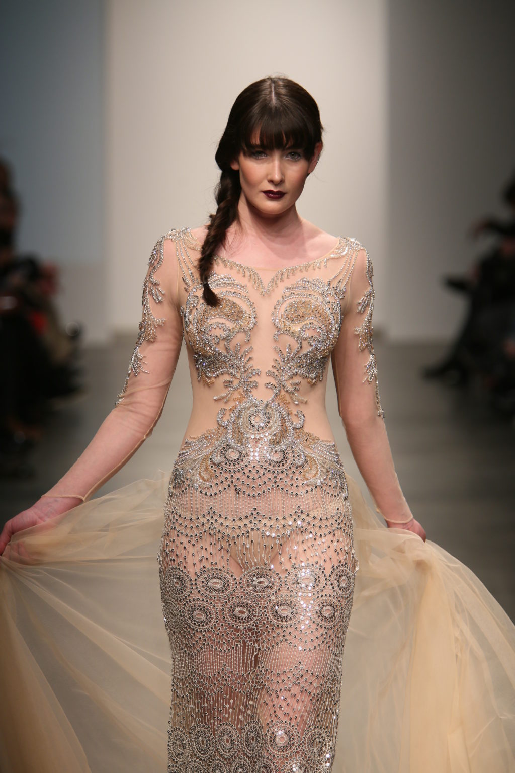 Strutting his vision for the 3rd time with Nolcha, Dany Tabet showcased the “Crystal Warrior.” The Lebanese designer begun his show by talking to his audience to deliver a message.