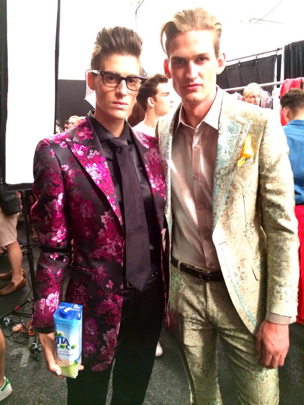 Backstage at Malan Breton‘s show, all the fun preparations were happening. The models are at all nooks of the corner socializing, resting, lots of eating and hey there’s even chess matches!