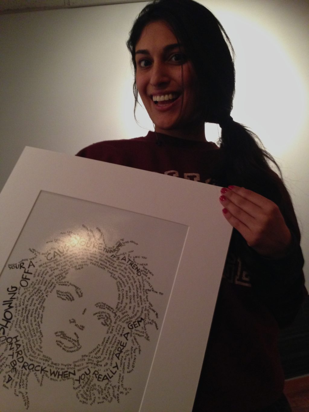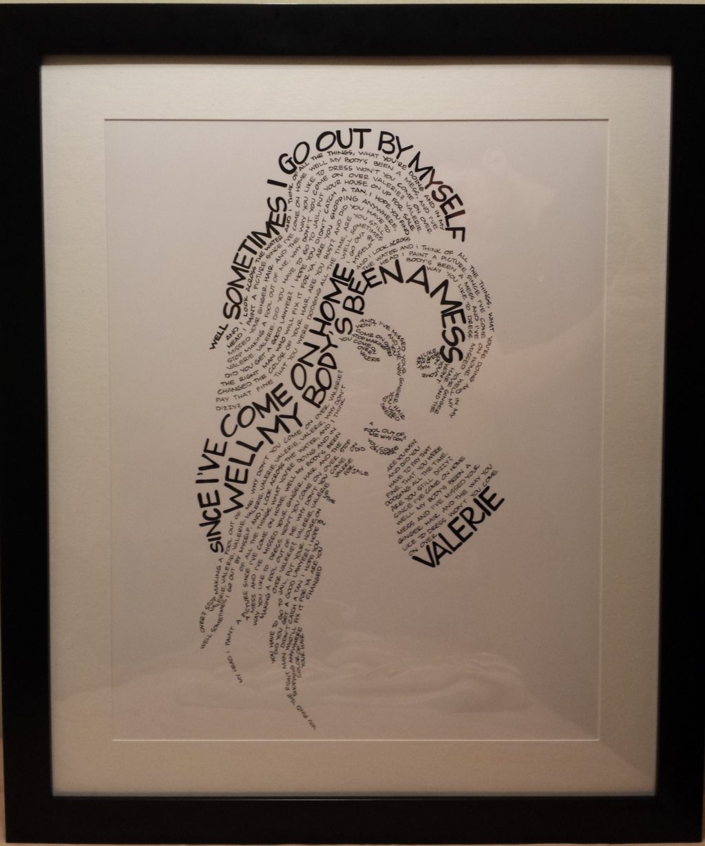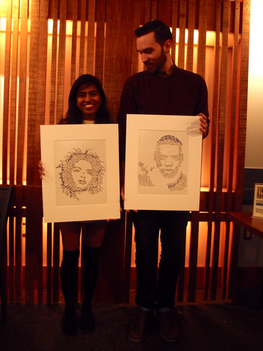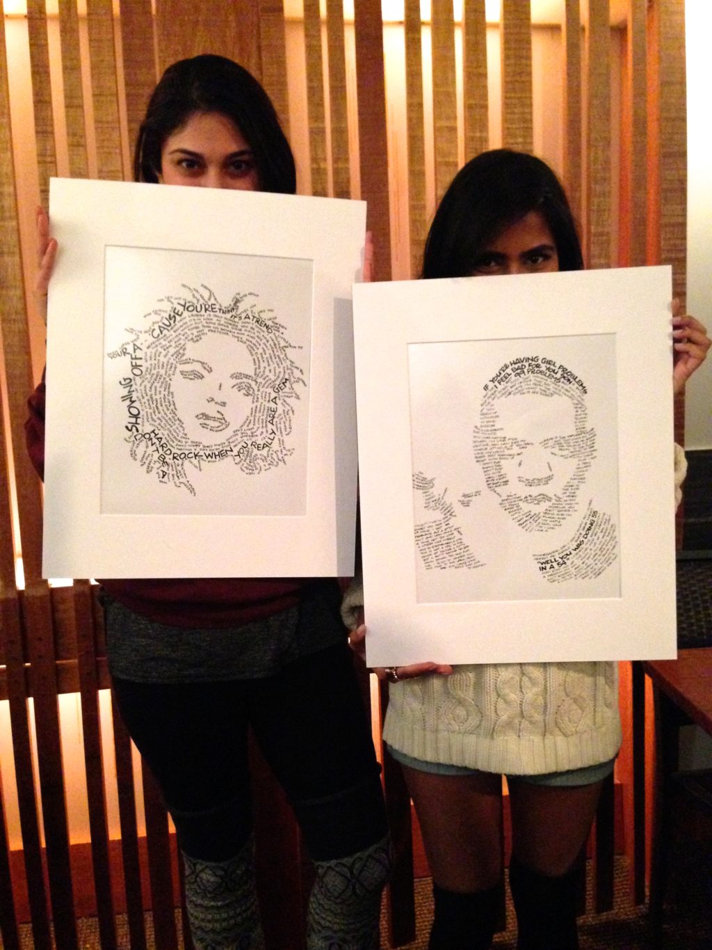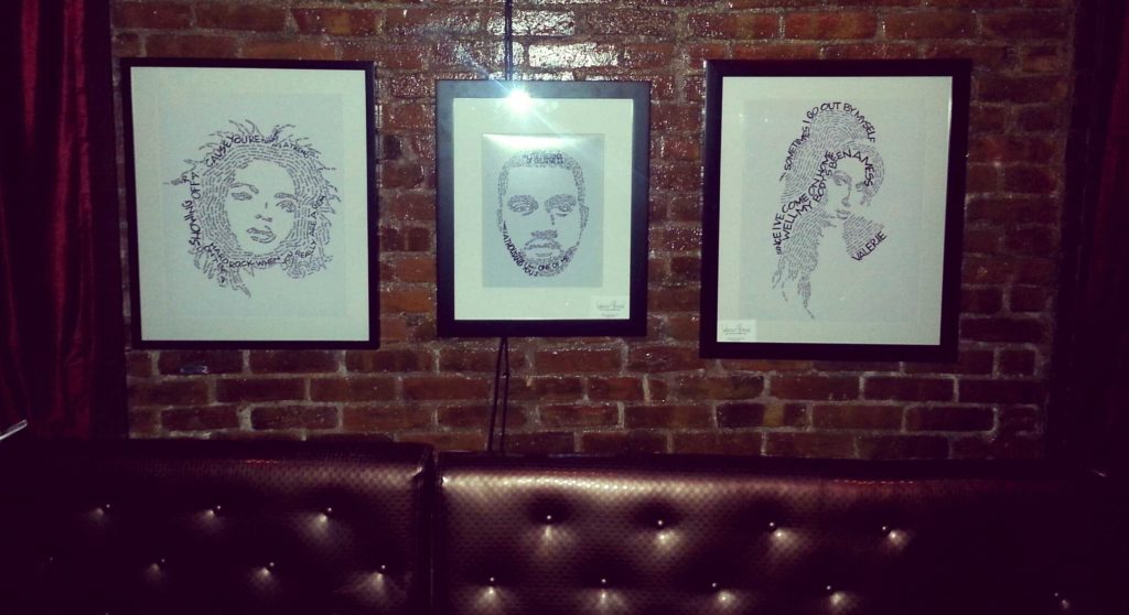 A great song can paint a picture with words and connect with our deepest emotions. It inspires us and encourage us in many ways. For Breens, she illustrates her favorite artists’ faces with only the lyrics from their songs making original art from the art of other artists.
