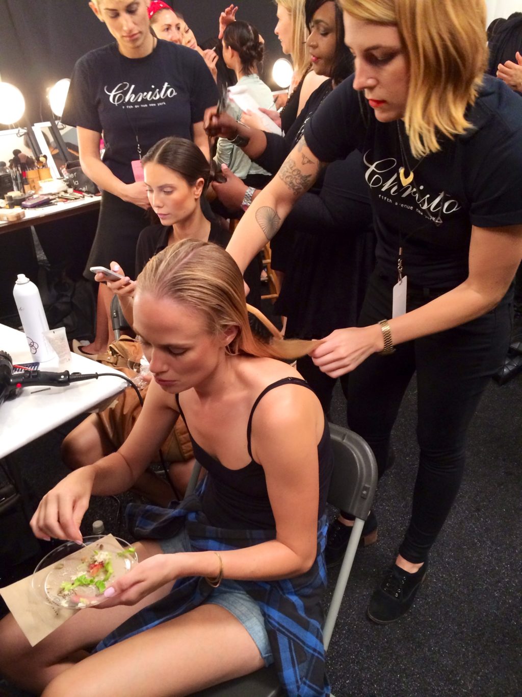 backstage during nyfw,