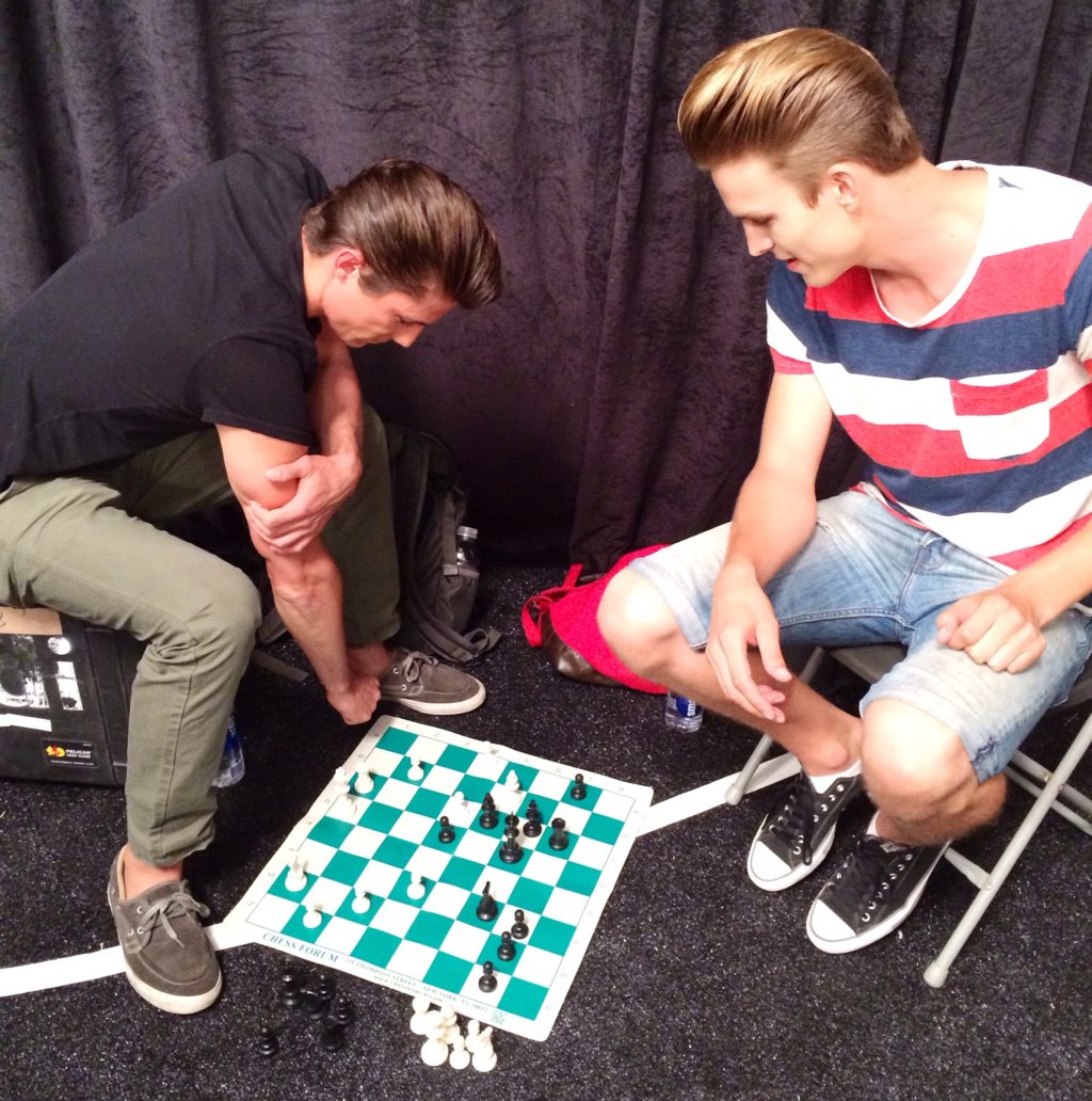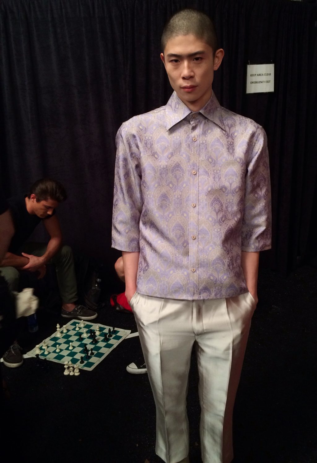 Backstage at Malan Breton‘s show, all the fun preparations were happening. The models are at all nooks of the corner socializing, resting, lots of eating and hey there’s even chess matches!