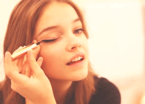 For a day look be simple but do make an impression; brush on a nude or almond shadow over lid, apply liquid black liner really close to the lash line and wing out slightly in the corner. Don’t fret if there are any mistakes, dip a cotton swab in makeup remover and voila the mess is gone. Curl your lashes and use a brown mascara for a less dramatic look.